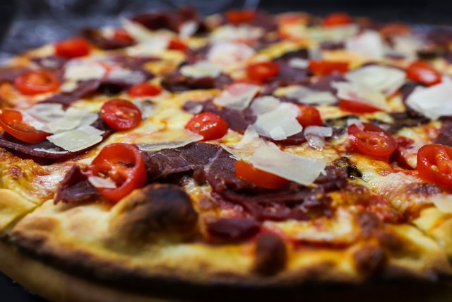 Σάλτσα ντομάτας, μοτσαρέλα, μανιτάρι porcini, bresaola, ντοματίνια & φλέικς παρμεζάνας.